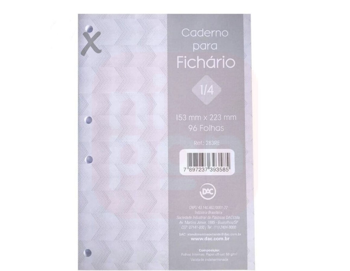 2. Bloco de Fichário 1/4 Cinza 96 Folhas - Dac
