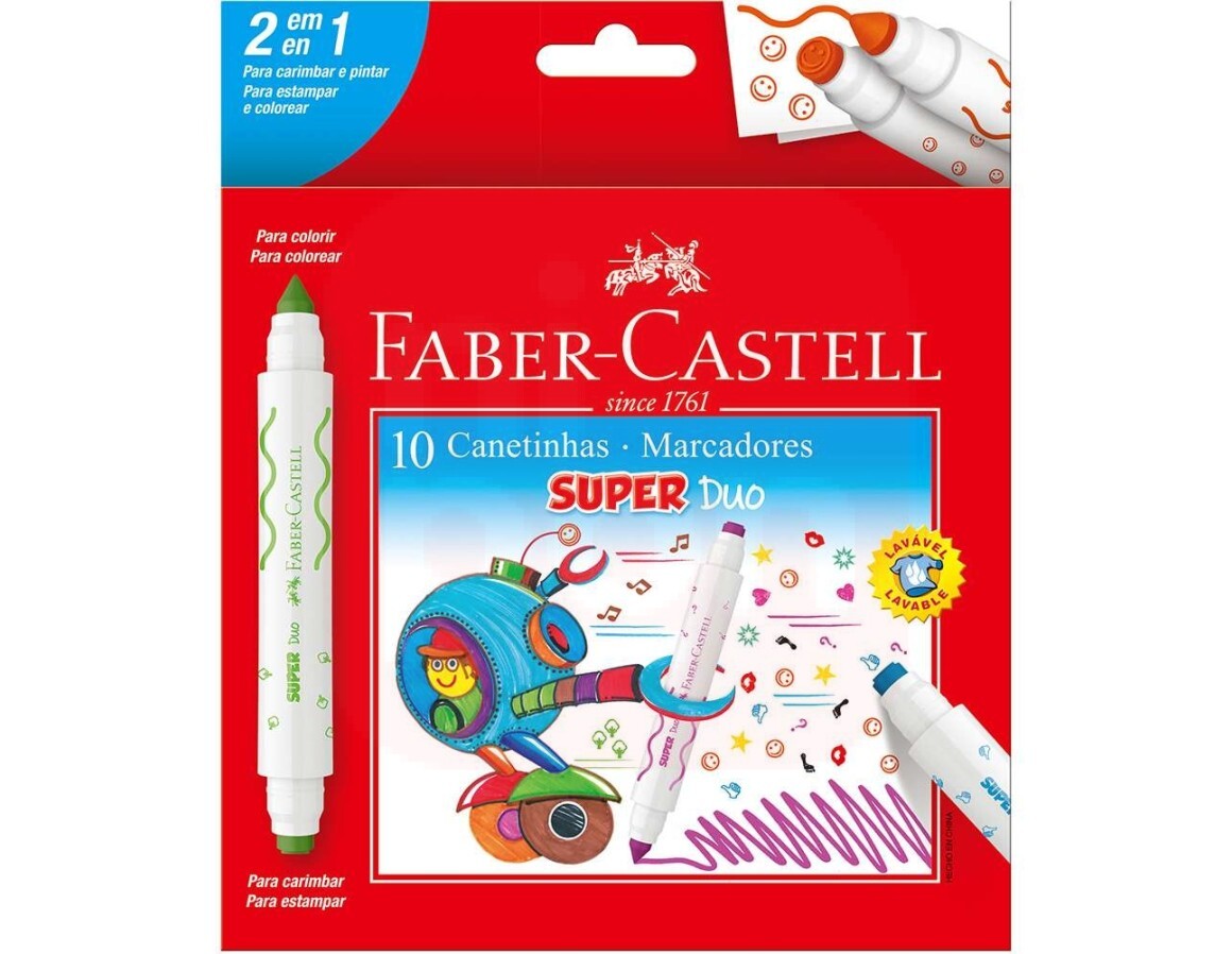 Canetinha 10 Cores SuperDuo + Carimbo - Faber-Castell